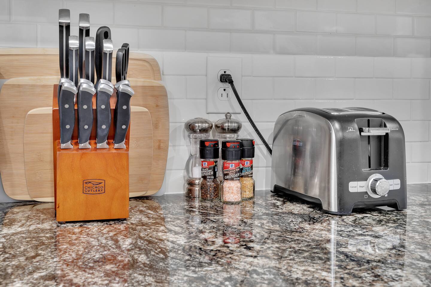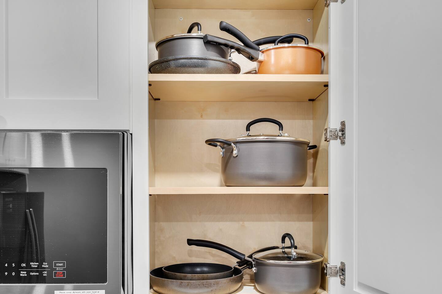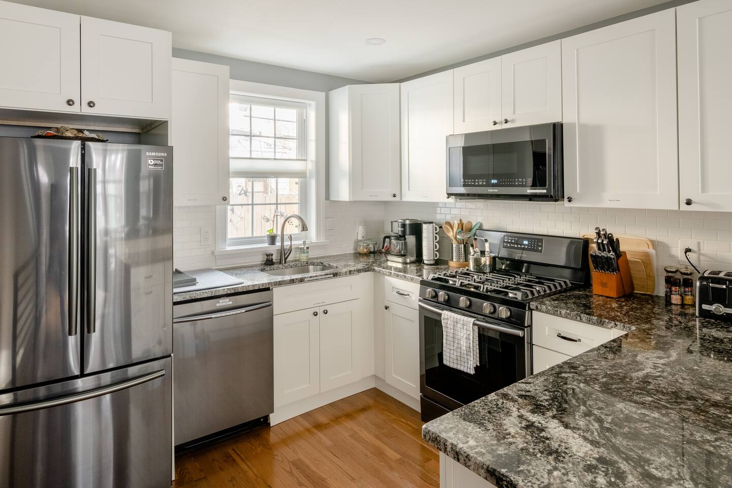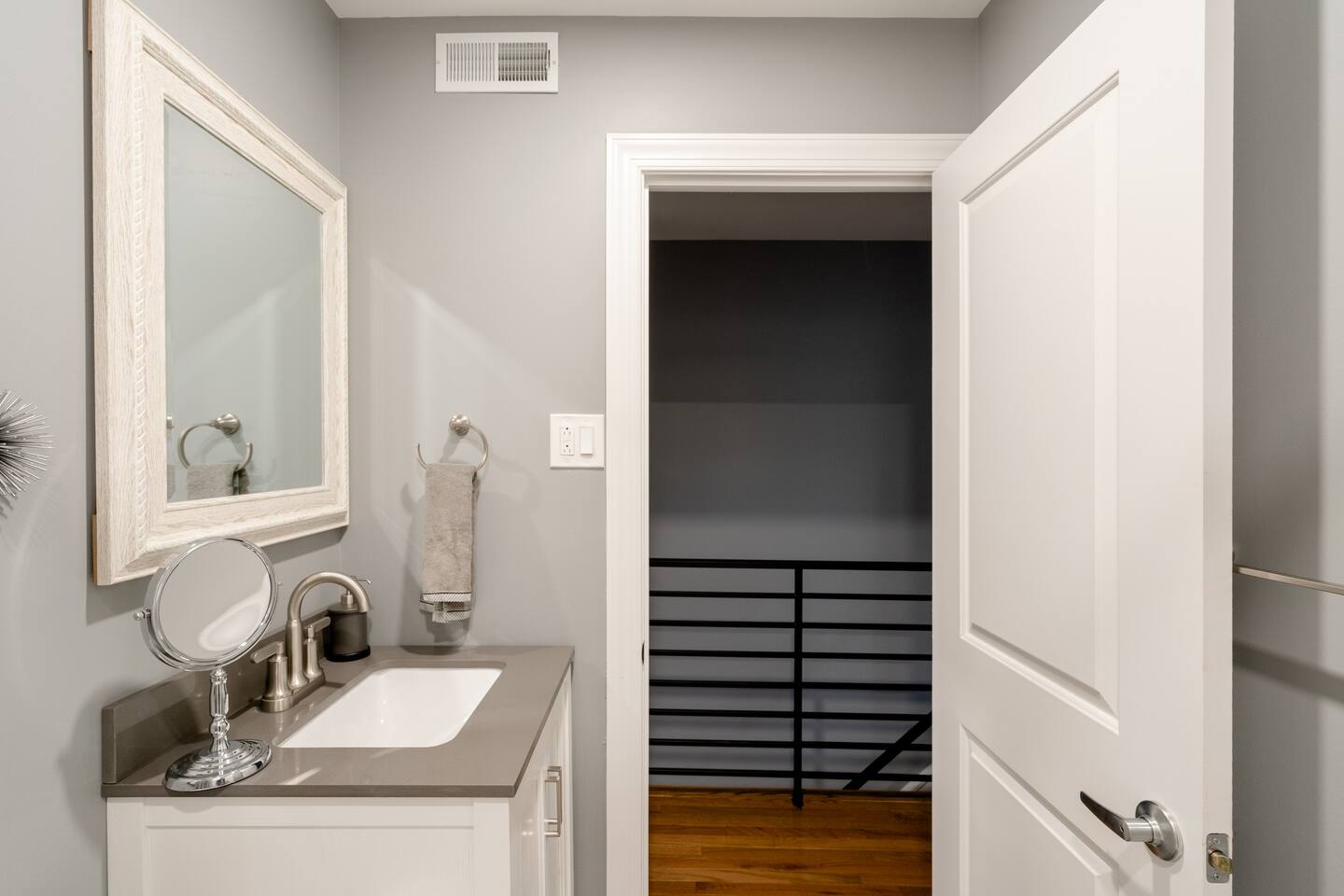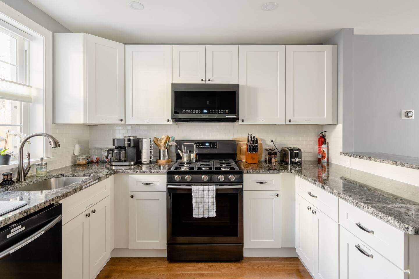 The home is furnished with a mid-century modern (MCM) style and has 3 bedrooms and 1.5 bathrooms, a finished basement with a laundry room snd the family room, and a backyard patio with outdoor seating. Look through the photo gallery for the floor plan. When you enter through the front door, you enter the living room. The living room is furnished with a couch that seats three people, two armchairs, and a coffee table. There is a 50-inch flat-screen smart TV with a sound bar mounted to the wall over a floating entertainment center. The living room is also equipped with an amazon echo smart speaker and a nest thermostat. The kitchen is next to the living room at the back of the first floor. The breakfast bar is furnished with four wooden bar stools. The kitchen has stainless steel appliances along with a coffee maker, a toaster, a blender, and an instant pot. Through the backdoor, you will have access to the backyard patio with a four-seat outdoor dining table. Down the stairs from the kitchen, there is a finished basement where you will find the family room furnished with a couch that can seat four people another 50-inch TV with a sound bar along with a round dining table that can seat four people. For your entertainment, there are several board games that you may enjoy. The basement also includes the half-bath powder room along with the laundry room. The top level of the home has the full bathroom and three bedrooms, each of which will comfortably sleep two people. The primary bedroom has a queen-sized bed. The secondary bedroom has a full-sized bed and a desk with a desk lamp. The smallest bedroom has a trundle bed with two single beds. The bottom bed is a pull-out bed with locking wheels.